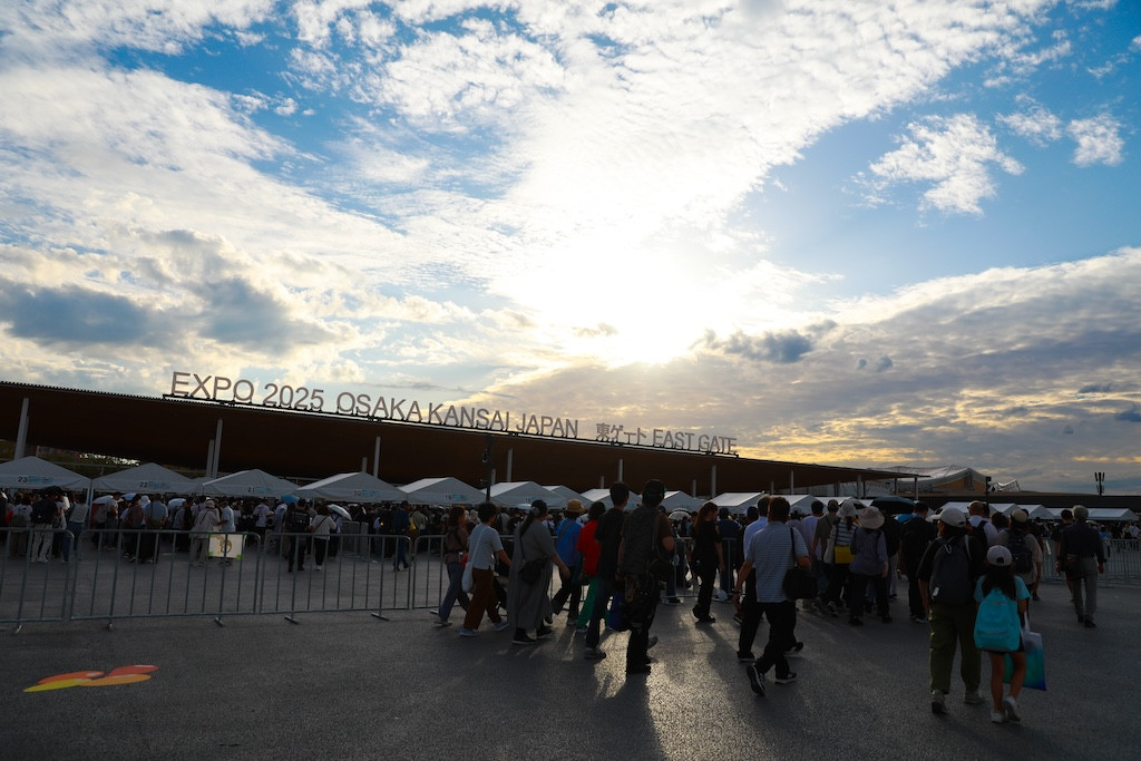夕暮れの木のリングが水辺に反射して、この景色を見るだけでも万博に来た甲斐あった。